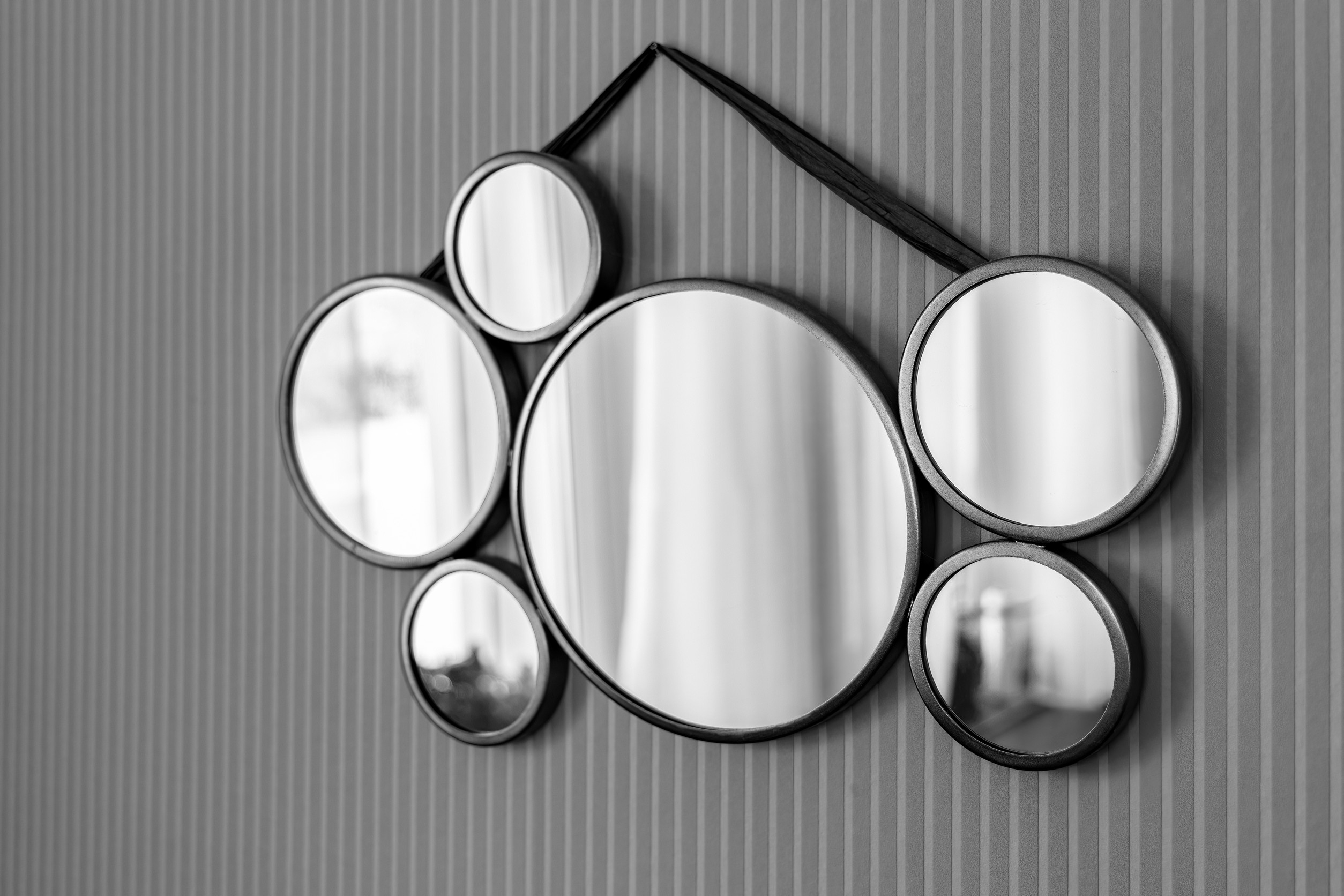 Mirrors are an instant way to make a space look larger and more expensive. Create your own with inexpensive round mirrors and decorative wood or metal trims. You can even repurpose an old frame, spray-paint it gold or silver, and add the mirror to create a custom, high-end feel.