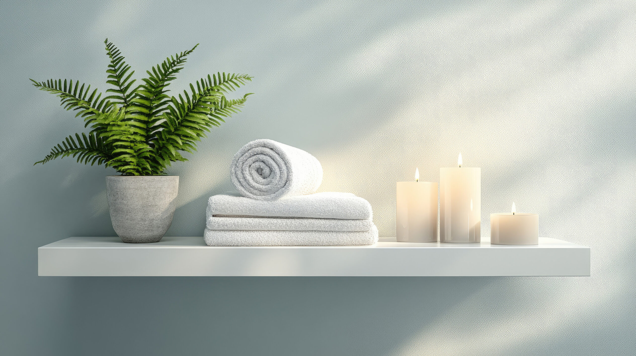 When in doubt, keep it simple with minimalist white floating shelves. Their clean lines and neutral color make them versatile, easy to pair with any bathroom theme, and ideal for creating a clutter-free, Zen-inspired environment.