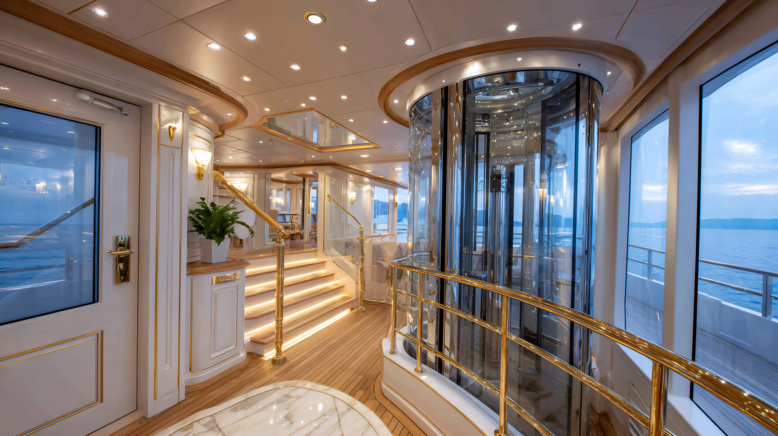 The glass walls allow residents to enjoy panoramic views as they travel from floor to floor, making every trip up and down feel like an experience in itself.