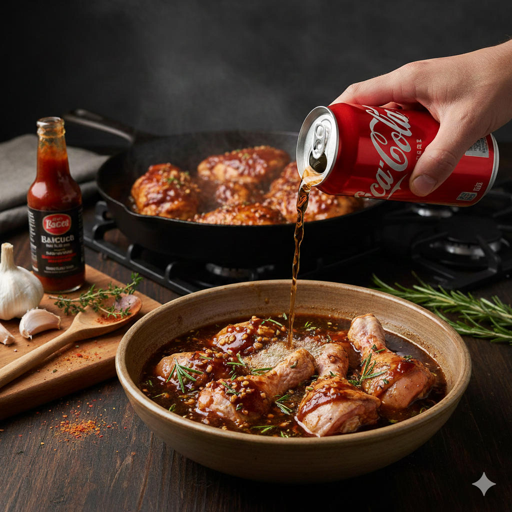 For an unforgettable dish, you can even cook a whole chicken in Coca-Cola. The result is tender, juicy meat with a shiny caramelized skin. It may sound strange, but the combination of Coke’s sweetness and acidity works wonders in the kitchen.