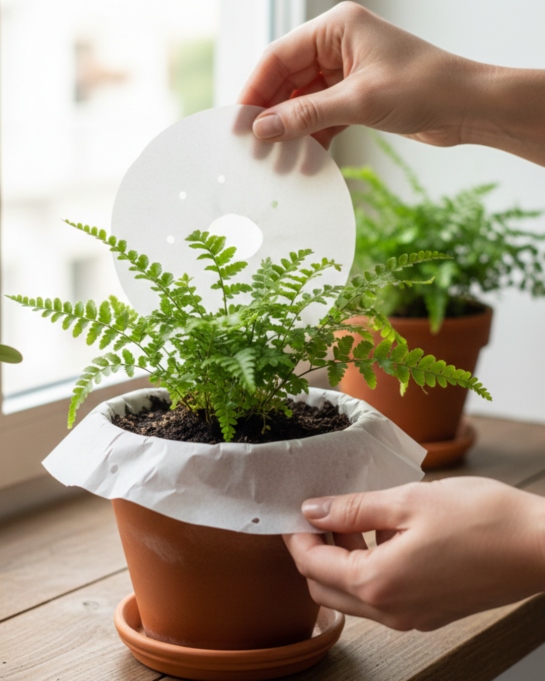 This barrier prevents pests from laying eggs in the soil, while also reducing water evaporation—perfect for moisture-loving plants. It’s a simple, budget-friendly, and eco-conscious alternative to chemical pest control products.