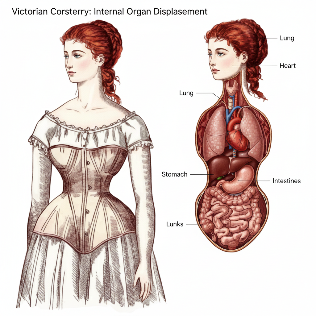 This extreme tight-lacing practice was criticized by many doctors, who warned that corsets could cause a host of health issues. Some of the concerns included restricted breathing, digestive problems, and the displacement of internal organs. Prolonged use of tight corsets also led to fainting spells, as the wearer’s organs were compressed, making it difficult for the body to function properly.