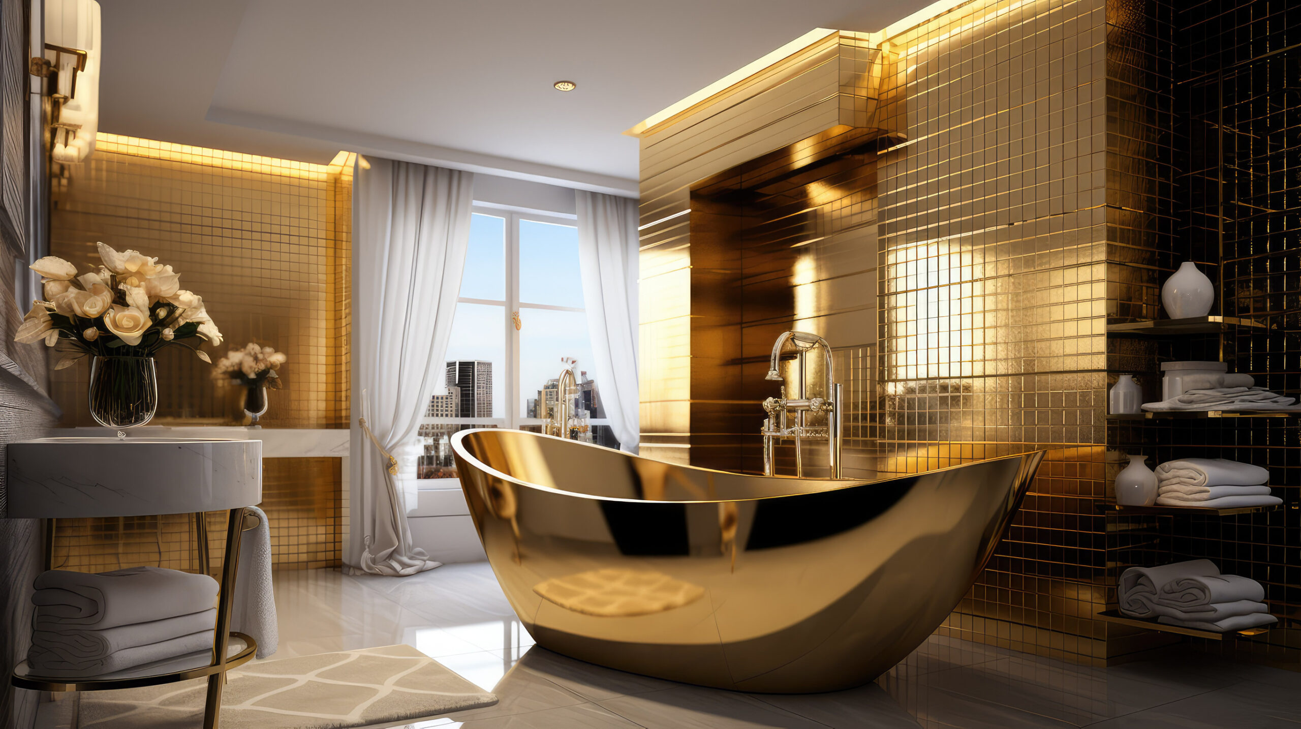 Opt for matte or brushed gold for a more modern, understated look, or go all-out with polished gold for a more dramatic effect. A gold-accented vanity or towel rails will instantly make the space feel as if it belongs in a luxury hotel suite or a famous movie star’s private residence.