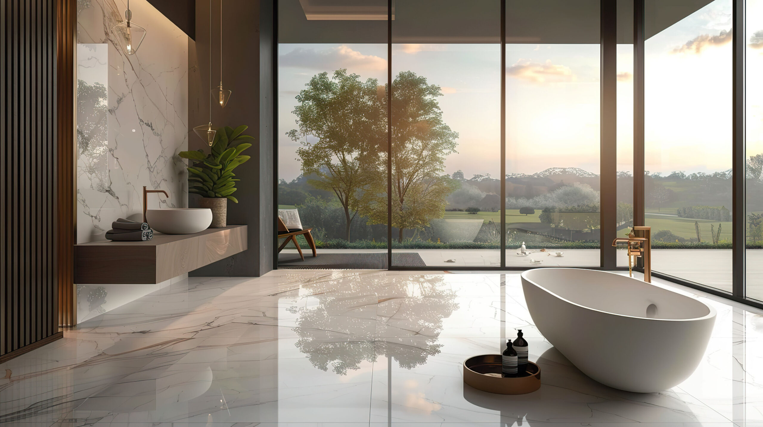 Add a sleek floor-mounted faucet with a tall spout and a plush, luxurious bath tray for your candles, wine glass, or a book, and you’ve got the ultimate relaxation station. Nothing says “Hollywood luxury” quite like indulging in a bubble bath with an expansive skyline as your backdrop.