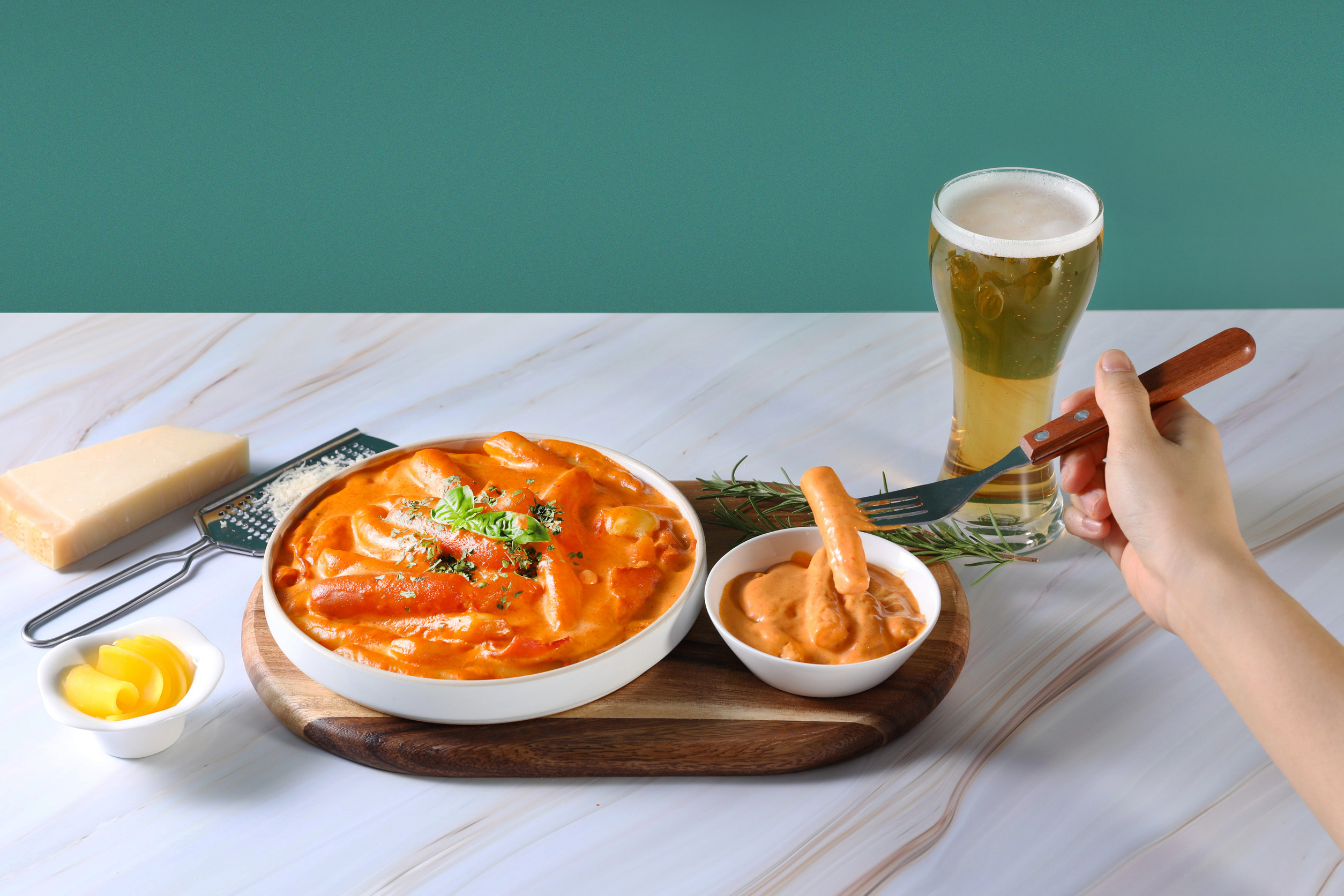 Tteokbokki is a popular Korean street food made from chewy rice cakes in a spicy, sweet, and savory sauce. The dish is often served with fish cakes and vegetables and is known for its bold, fiery flavors.