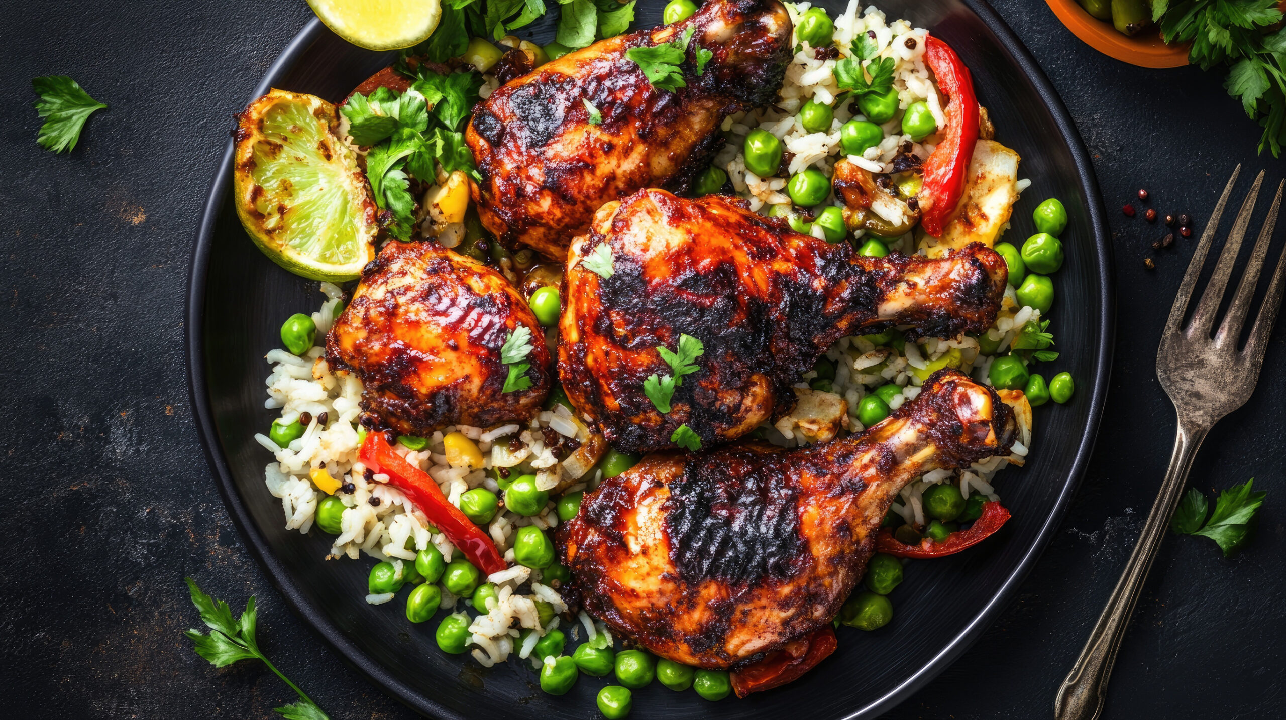 The marinade is both spicy and aromatic. Scotch bonnet peppers are known for their intense heat, and they are a staple in Jamaican cooking. The chicken is marinated for hours in the spicy jerk mixture before being grilled to perfection, resulting in a crispy, smoky exterior and tender, juicy meat.