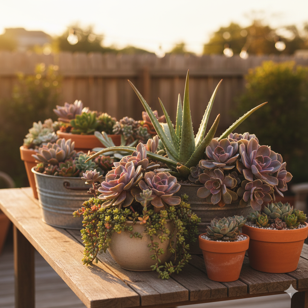 Succulents are ideal for container gardening due to their ability to thrive in dry conditions and low-maintenance care. Their unique appearance and easy care make them a perfect option for those new to gardening.