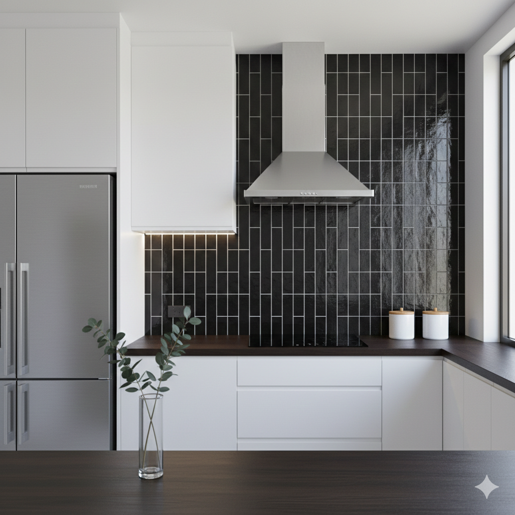 Black subway tiles can create a bold and sophisticated backsplash, especially when paired with contrasting elements like white cabinets or stainless steel appliances. Black tiles add drama and depth to your kitchen, making them perfect for a more contemporary or minimalist design.