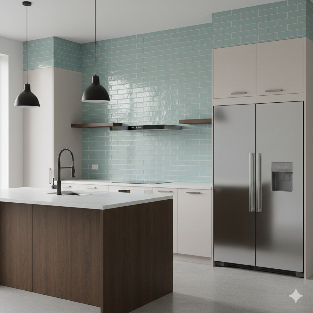 Glass subway tiles are perfect for a modern, high-end kitchen design. The reflective surface helps to bounce light around the room, creating a bright and spacious feel.