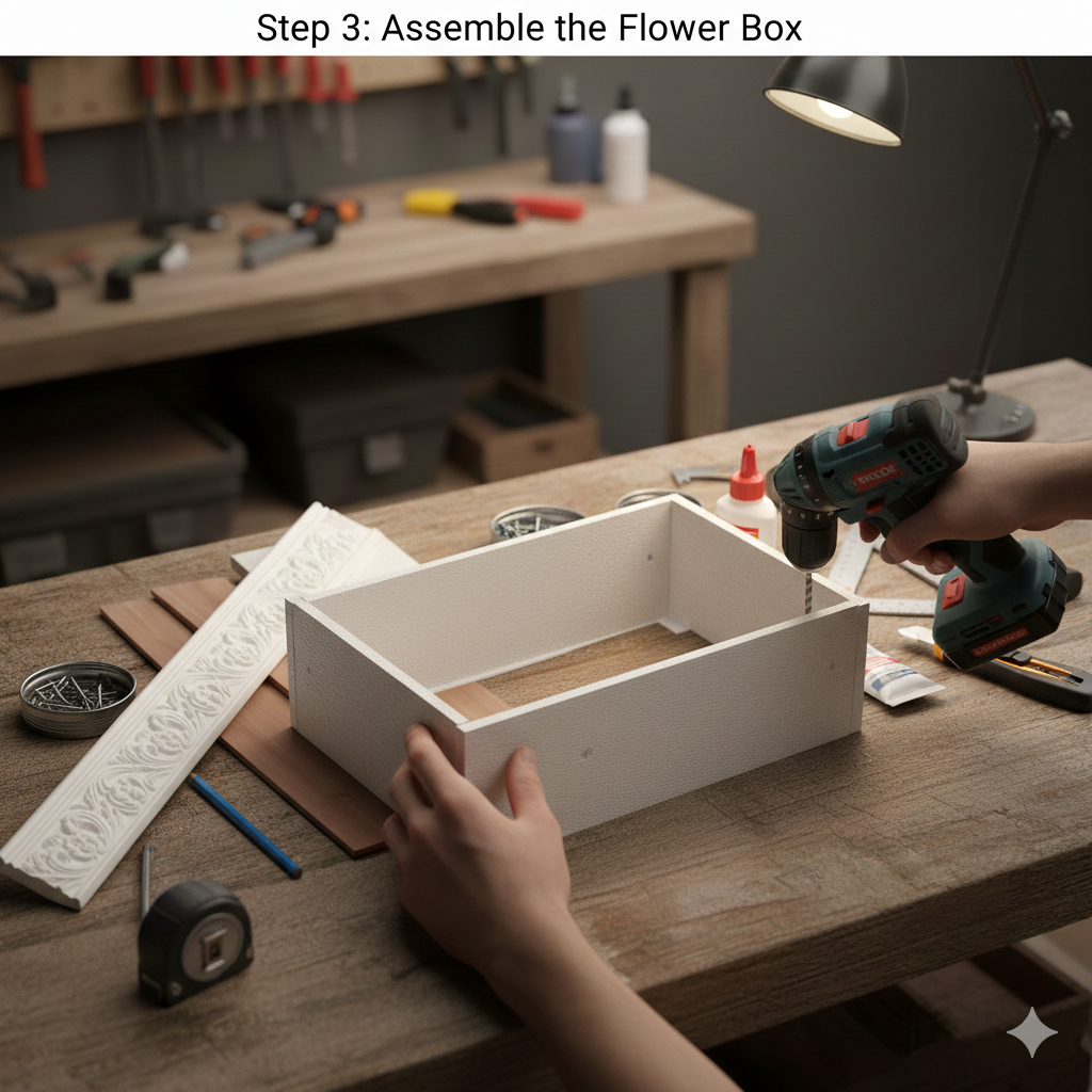 • Decorative Trim: To add character, you’ll want to trim the edges of the flower box with a stylish molding or decorative piece.