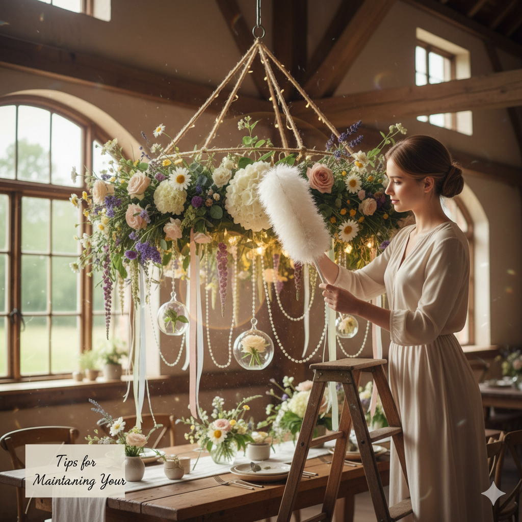 Maintaining your DIY flower chandelier is relatively easy, especially if you’ve used artificial flowers. Here are some maintenance tips to keep your chandelier looking fabulous for years to come: