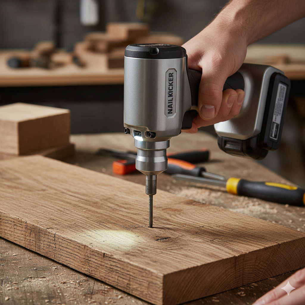 A nail kicker is one of the most efficient tools for removing nails from wood, particularly when the nail has its shaft protruding from the wood.