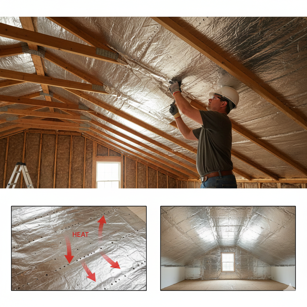 - Radiant barriers reflect heat back into the living areas, reducing the need for additional heating.