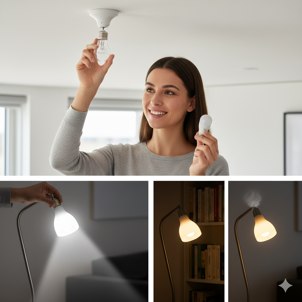 - Use LED bulbs in frequently used areas like kitchens, living rooms, and hallways.