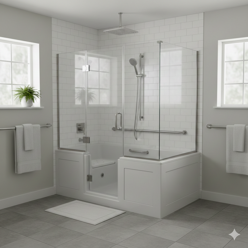 - Perfect for: Homeowners with limited space who still want the functionality of both a shower and a bathtub.