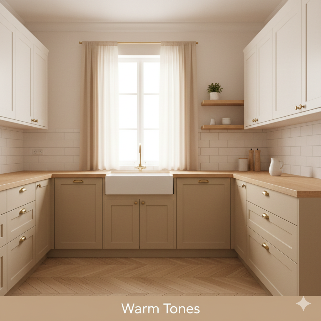 These shades provide a sense of warmth while keeping the kitchen light and open, preventing it from feeling too confining.