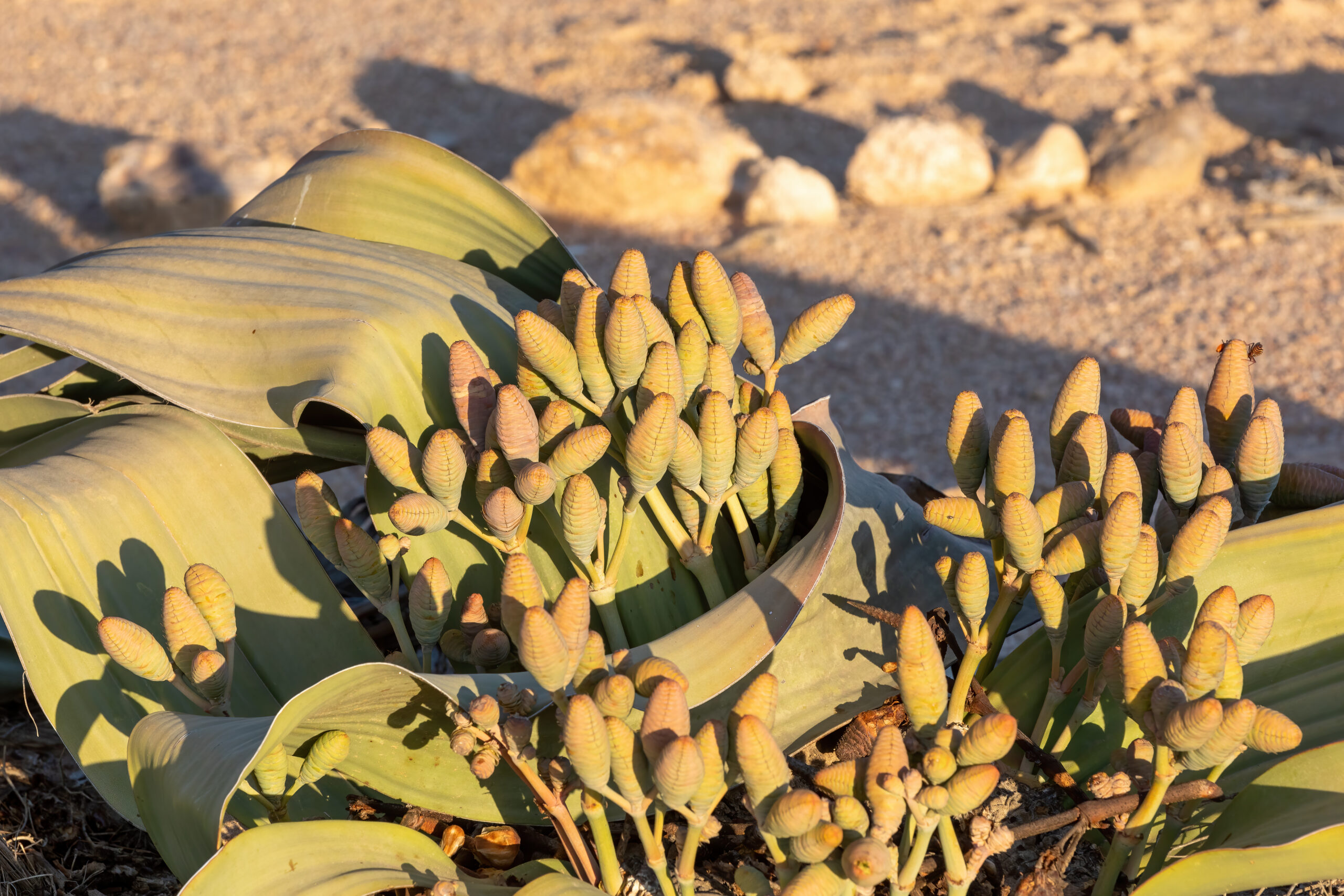 Known for its two long, strap-like leaves that continuously grow throughout its life, the Welwitschia is often described as a “living fossil” due to its survival for over 200 million years. This plant is well-adapted to the arid desert conditions, absorbing moisture from the morning fog that rolls in from the ocean.